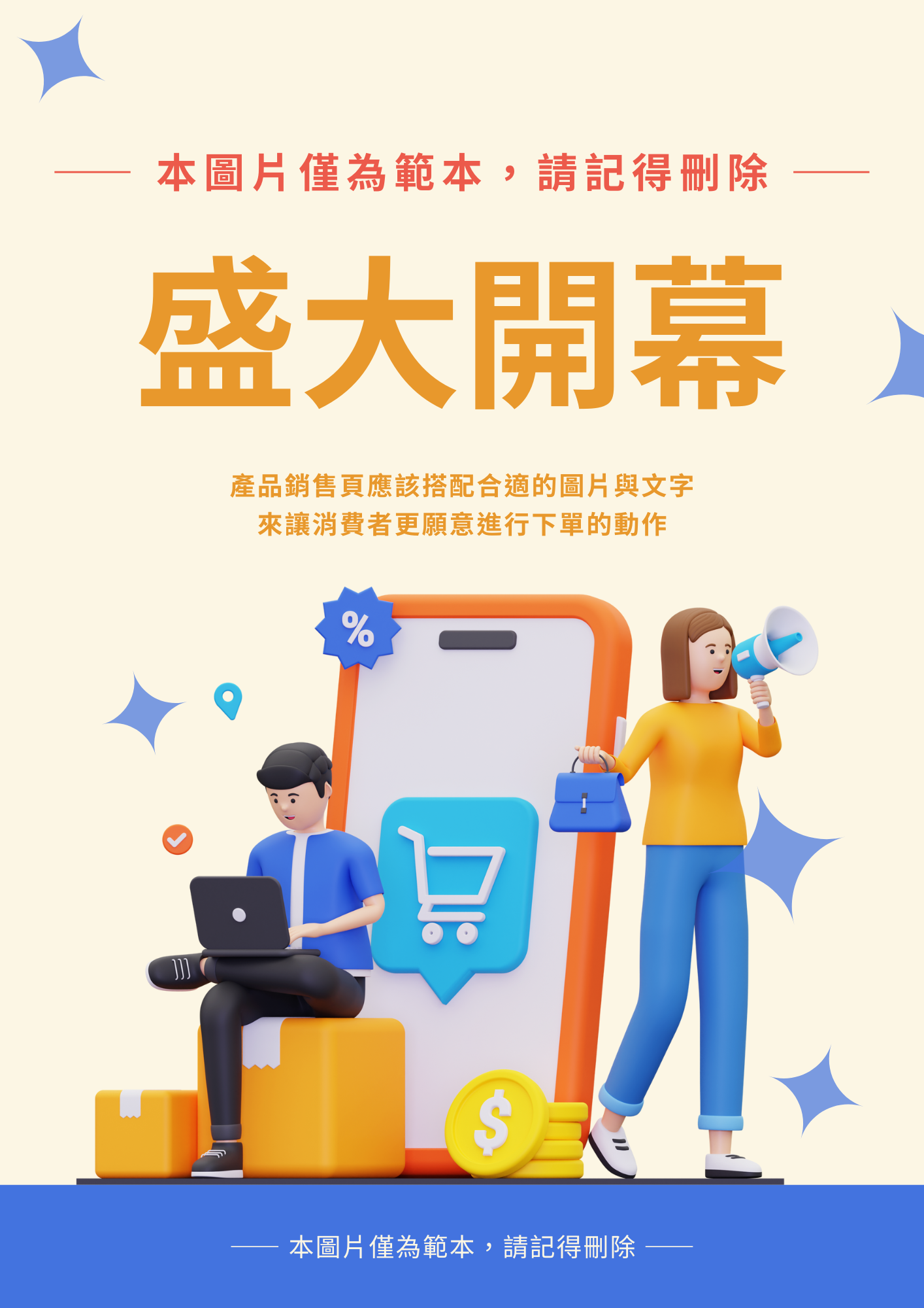 特價中 🔍 簡單商品範例 (熱門 – 有圖庫)NT$999 原始價格:NT$999。NT$699目前價格:NT$699。 這是一款展示用的範例商品,為展示電子商城內容而設計,展示如何進行清晰簡單的商品描述,並且以條列形式說明其主要優點。 商品特色: 高品質材質:採用優質材質製作,保證產品耐用且安全。 實用設計:設計符合現代需求,無論家庭或辦公使用都能發揮出最佳效果。 多功能應用:適合多種場景使用,滿足您的不同需求。 環保選擇:產品製造過程考慮環境影響,使用可持續材料。 時尚外觀:簡約且時尚的外觀設計,適合各種風格空間。 簡單商品範例 (熱門 - 有圖庫) 數量 加入購物車 描述 這邊是你可以放些商品圖片或是文字介紹的區塊 請記得將以下這些內容刪掉換上專屬於你的產品資訊 相關商品 特價中 簡單商品範例 (熱門 – 無圖庫) NT$999 原始價格:NT$999。NT$699目前價格:NT$699。 加入購物車 特價中 組合商品範例 (熱門) NT$699 查看商品 特價中 外部商品範例 (熱門) NT$999 原始價格:NT$999。NT$699目前價格:NT$699。 馬上購買 特價中 可變商品範例 (熱門) NT$999 原始價格:NT$999。NT$699目前價格:NT$699。 選擇規格 此產品有多種款式。 可在產品頁面選擇選項